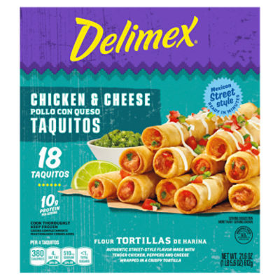 Delimex Chicken & Cheese Large Flour Taquitos Frozen Snacks, 18 ct Box