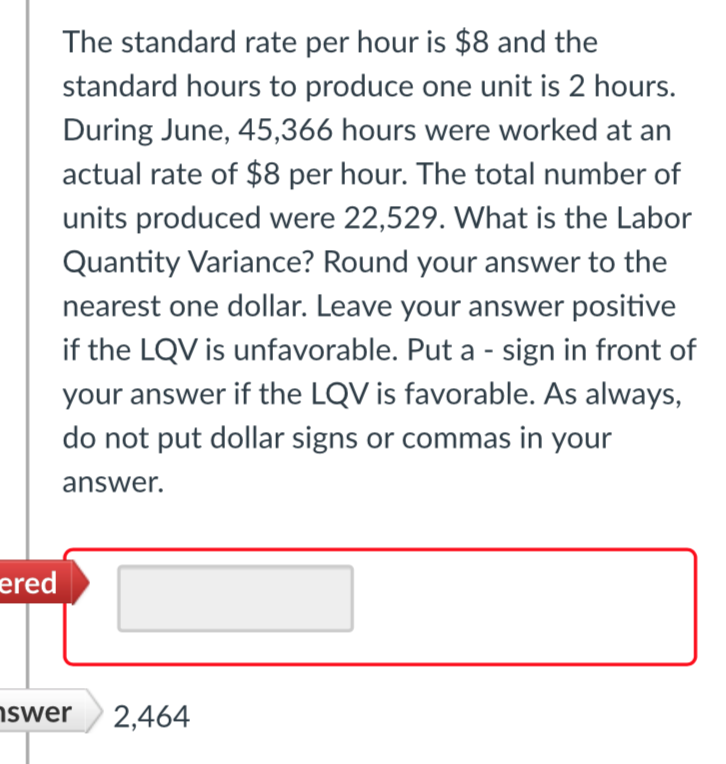 Solved The standard rate per hour is 8 and the standard