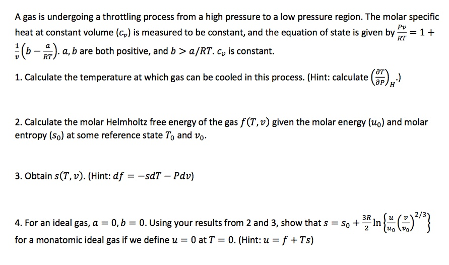 Solved A gas is undergoing a throttling process from a high