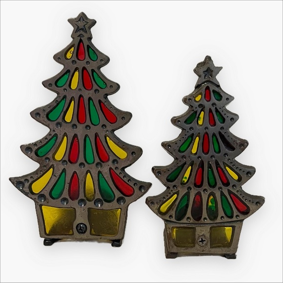 Vintage Holiday Vintage Stained Glass Cast Iron Christmas Tree Candle Holders Poshmark
