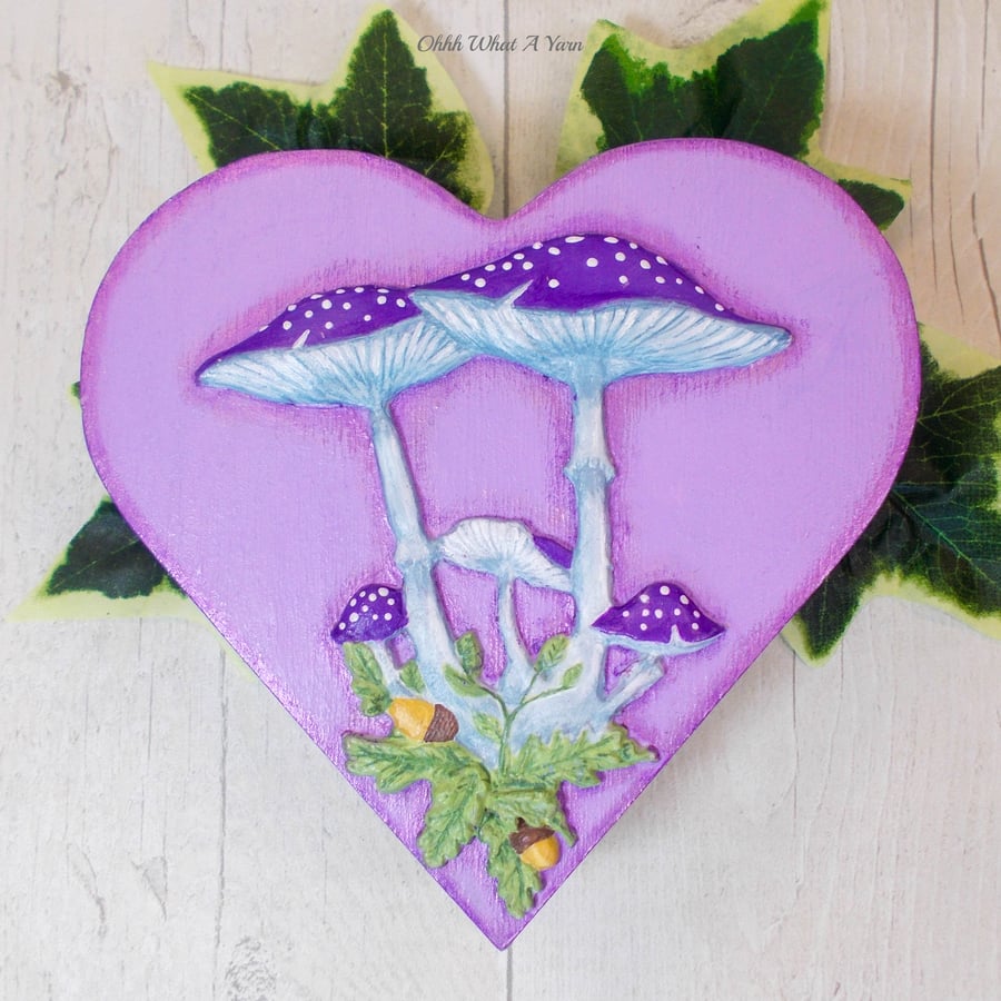 Purple toadstool heart mixed media trinket box.... Folksy