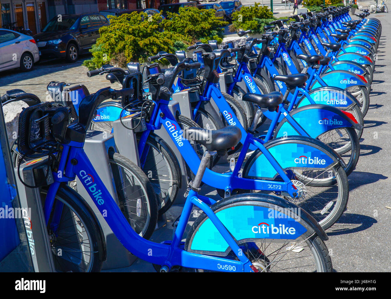 Rental Bike Service in New York provided by Citibank MANHATTAN / NEW YORK APRIL 1, 2017 Stock