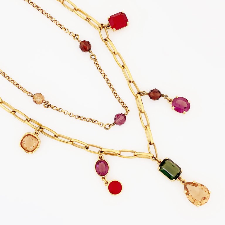 Double Strand Gold Chain Necklace With Jewel Tone Crystals By Swarovski, 1980s For Sale at 1stDibs Long Double Strand Gold Chain Necklace Check out our double gold chain necklace selection for the very best in unique or custom, handmade pieces from our chains shops. Also set sale alerts & shop exclusive offers only on shopstyle Double layered necklace with aqua turquoise blue amazonite pear drops dangles and gold filled coin chain. Gold plated layered choker necklace double chain necklace with delicate paperclip. Long Double Strand Gold Chain Necklace.