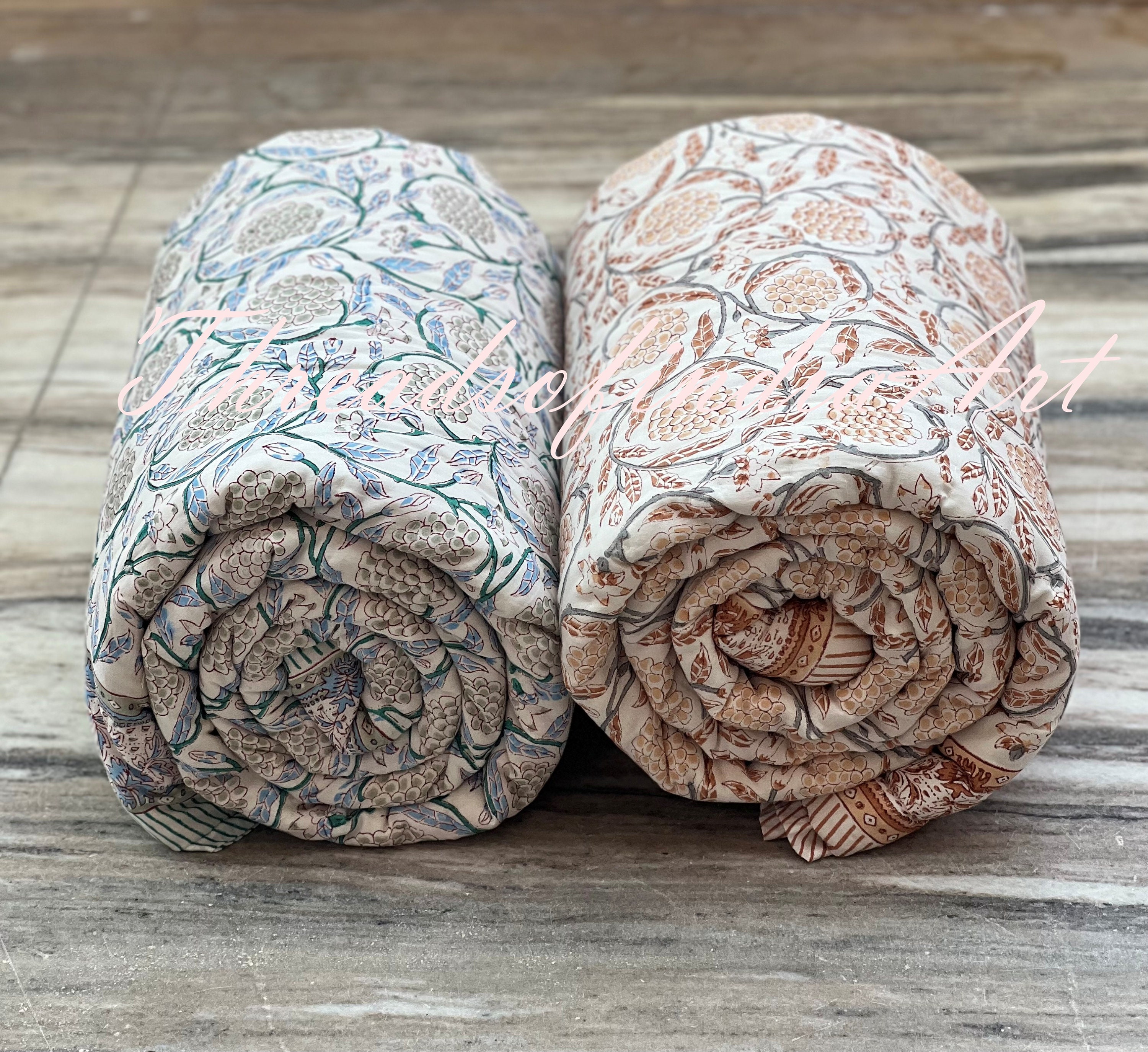 Winter Warm Razai Quilt, 100 Cotton Light Weight Winter Reversible Razai ,bedspread Quilt Winter Razai Quilt Winter warm razai quilt, 100% cotton light weight unique reversible razai ,bedspread quilt ethnic hand block print. Light weight winter reversible razai winter warm razai quilt, bedspread quilt ethnic hand block print coverlet quilt blanket warm. You can identify a genuine jaipuri razai by its lightweight feel, intricate stitching, fine cotton filling, and vibrant traditional. Beautiful hand block print reversible. Winter Razai Quilt.