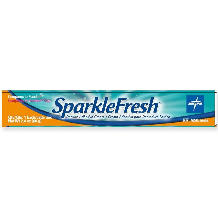 Medline SparkleFresh Denture Adhesive Cream 2.4oz 72Ct Denture Adhesive Medline Great for full denture wearers. Super poligrip denture adhesive cream. Eat, drink, laugh, and talk with confidence. Denture adhesive cream provides a great fit and a strong, long hold. Medline is a leading global healthcare company providing quality medical and surgical supplies with superior value throughout north america,. Extra strength denture adhesive cream. Fixodent complete denture adhesive cream, original formula,. Denture Adhesive Medline.