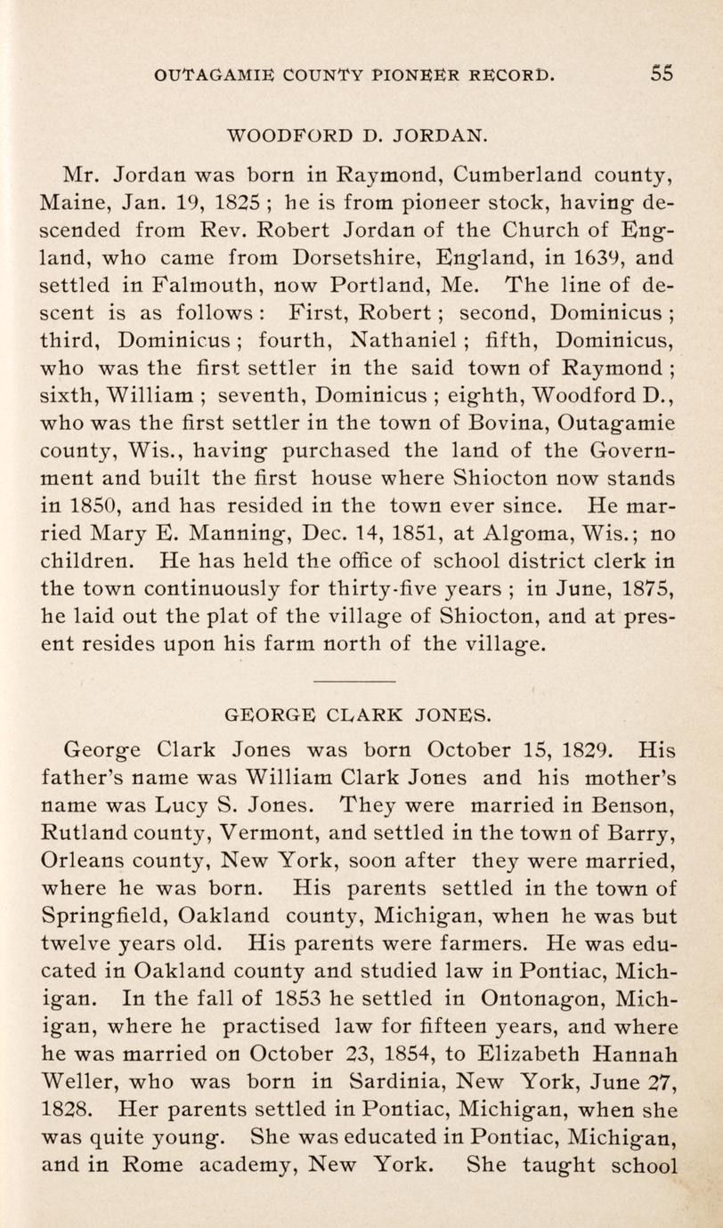 Record of the pioneers of Outagamie County, Wisconsin also an