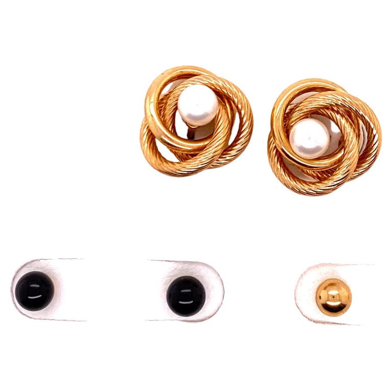 Yellow Gold Knot Stud Earring Enhancers with Pearl and Ball Stud Set