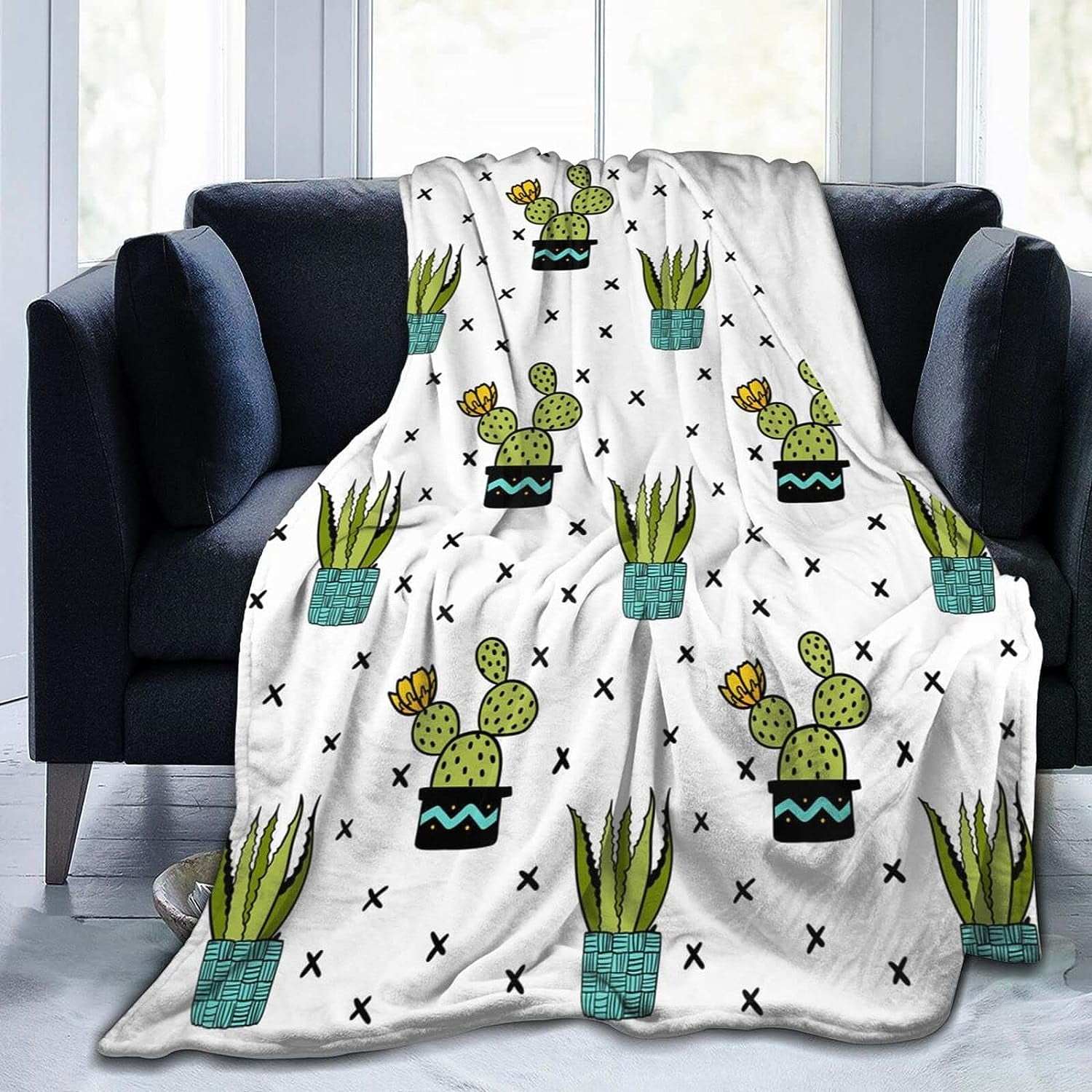 Succulents Cactus Aloe Potted Plants Cute Blanket All Seasons 60"X50