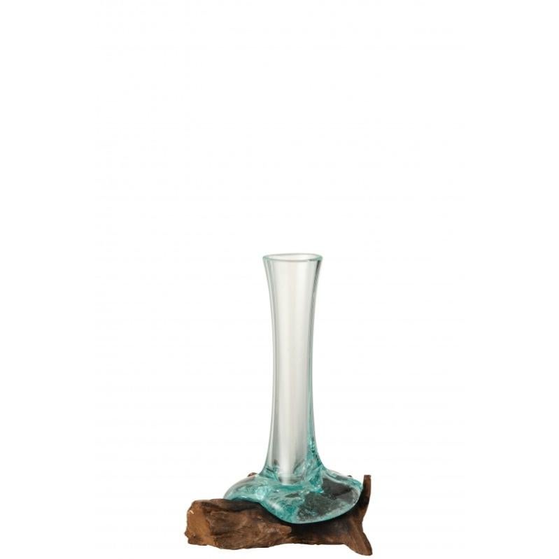 Vase en verre sur pied en bois de gamal marron 15x9x21 cm Leroy Merlin