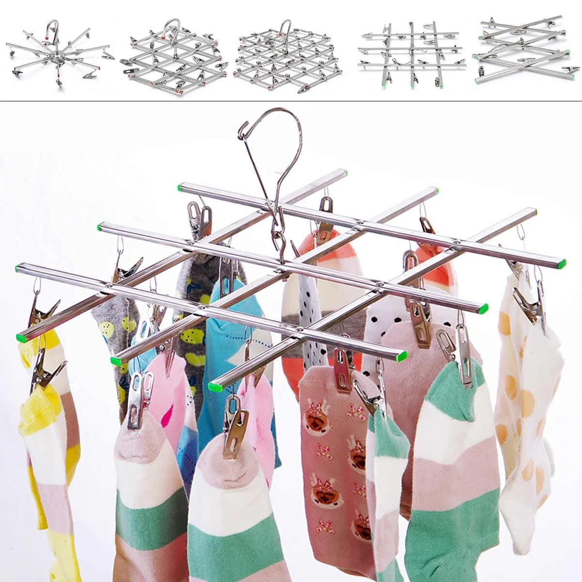 Stainless Steel Foldable Clothes Hanger Airer Underwear Sock Dryer Laundry Rack Flat Head Design