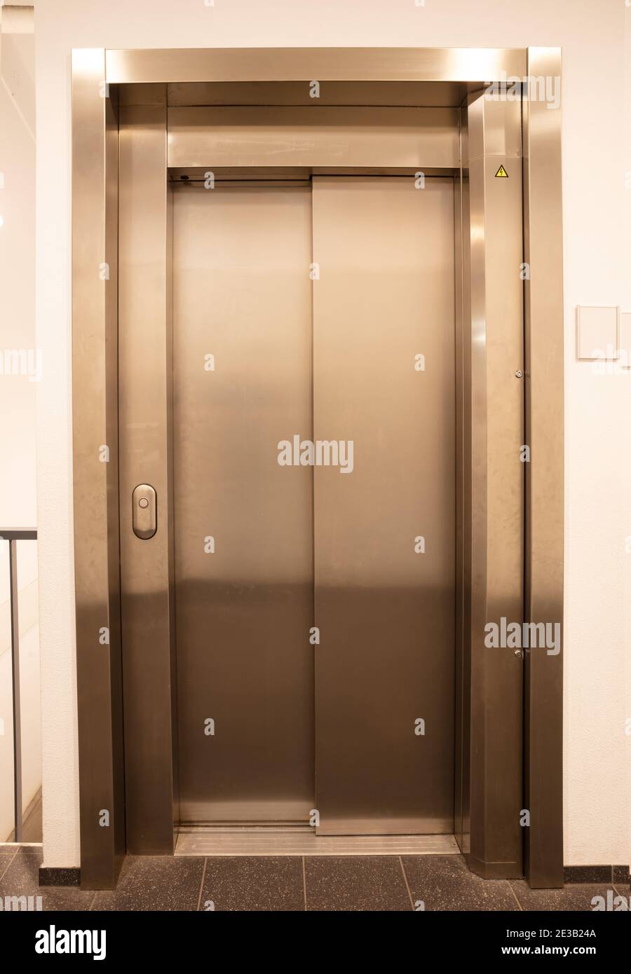 Modern office fragment, shining elevator doors in a white wall Stock Photo Alamy