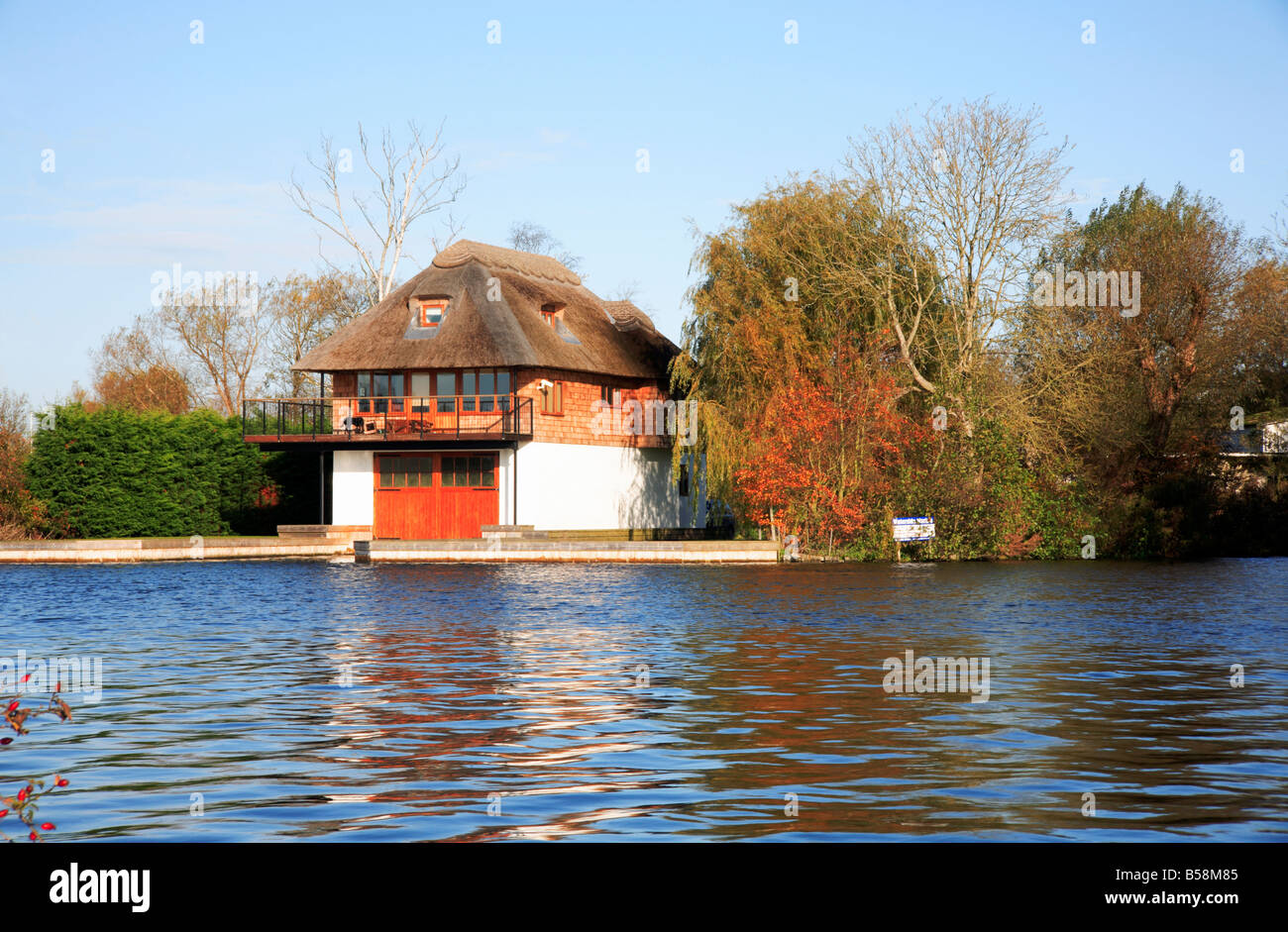 Riverside residence with boathouse under on the River Bure at Horning, Norfolk, UK Stock Photo