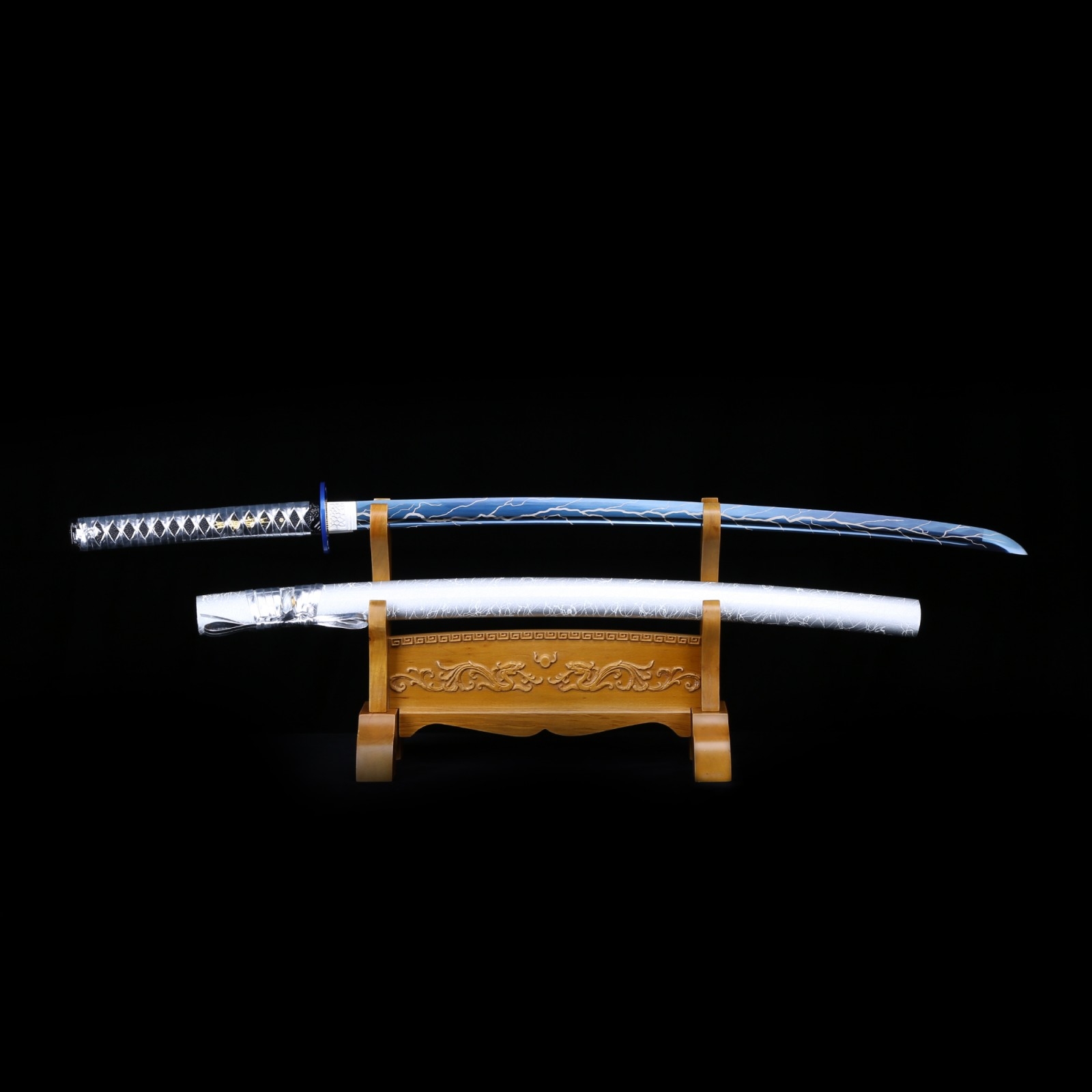 Hand Katana,Lightning Engraving Blue Branches Classic Sato Katana Blue Lightning Katana Introducing our stunning blue katana, a masterpiece that combines the rich tradition of samurai. The alloy tsuba is delicately patterned to lighten it. The blue lightning katana embodies the essence of lightning, empowering you with its energy. Whether you are a sword collector or a martial art practitioner, if you are looking for a lightning theme japanese samurai swords that. Blue Lightning Katana.