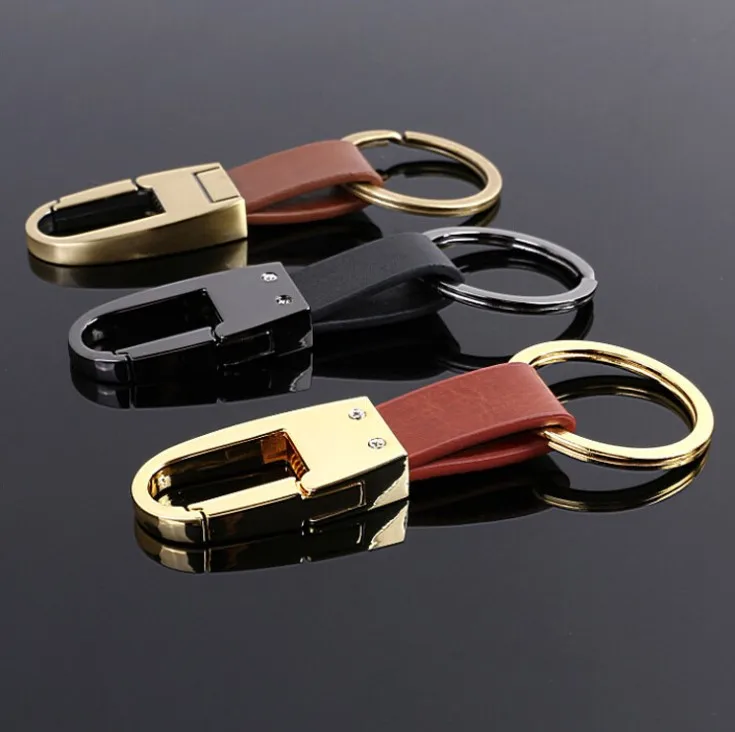 Luxury Men's Leather Keychain In Shine Gold Color Stainless Steel Men Car Key Chain With Leather