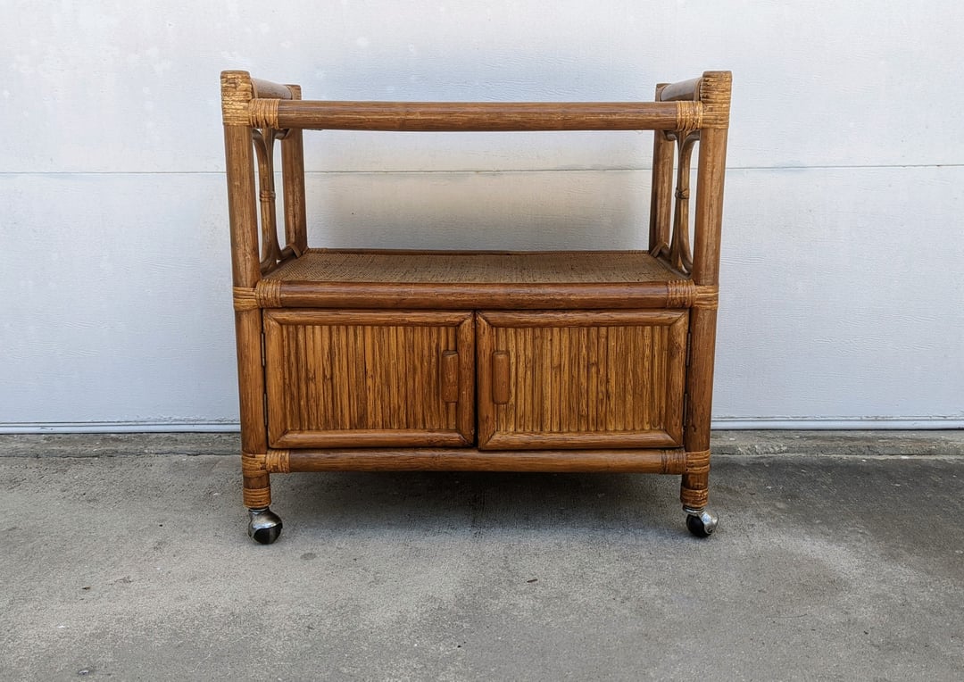 Vintage Rattan Rolling Bar Cart Server Media Console Wicker Mod and Ozzie Annapolis, MD