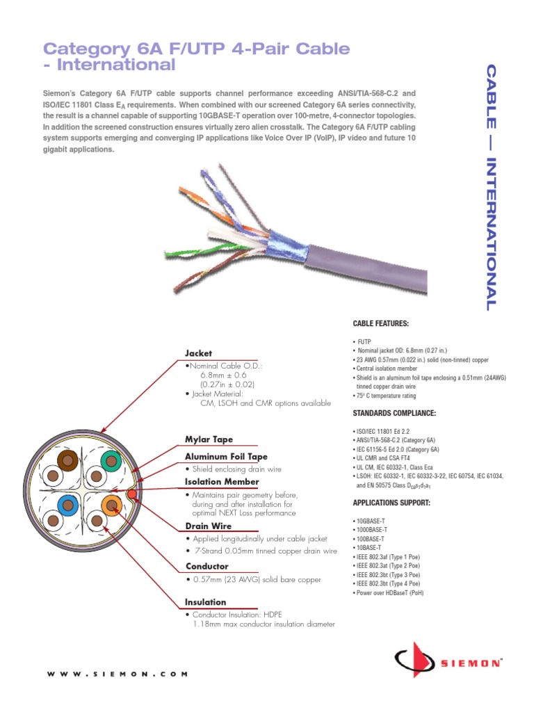 Siemoncategory6a Futp Cable International Specsheet Electricity
