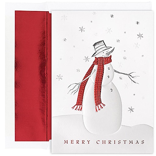 JAM Paper® Christmas Holiday Cards Set, Peace and Joy Cozy Snowman, 16/pack (526839200) at Staples