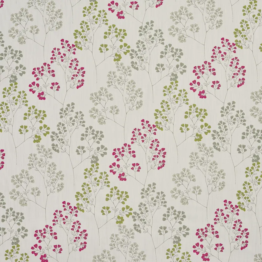 Green Grey and Pink Small Leaf and Twine Print Linen Upholstery Fabric