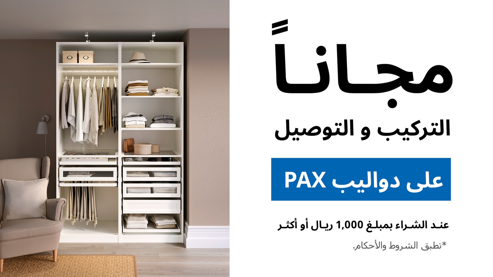 توصيل وتركيب مجاني على دواليب PAX IKEA
