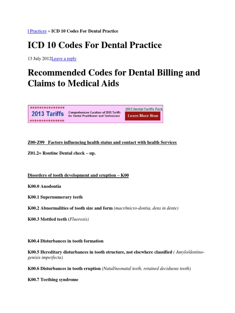 ICD 10 Codes For Dental Practice L Practices PDF Human Tooth