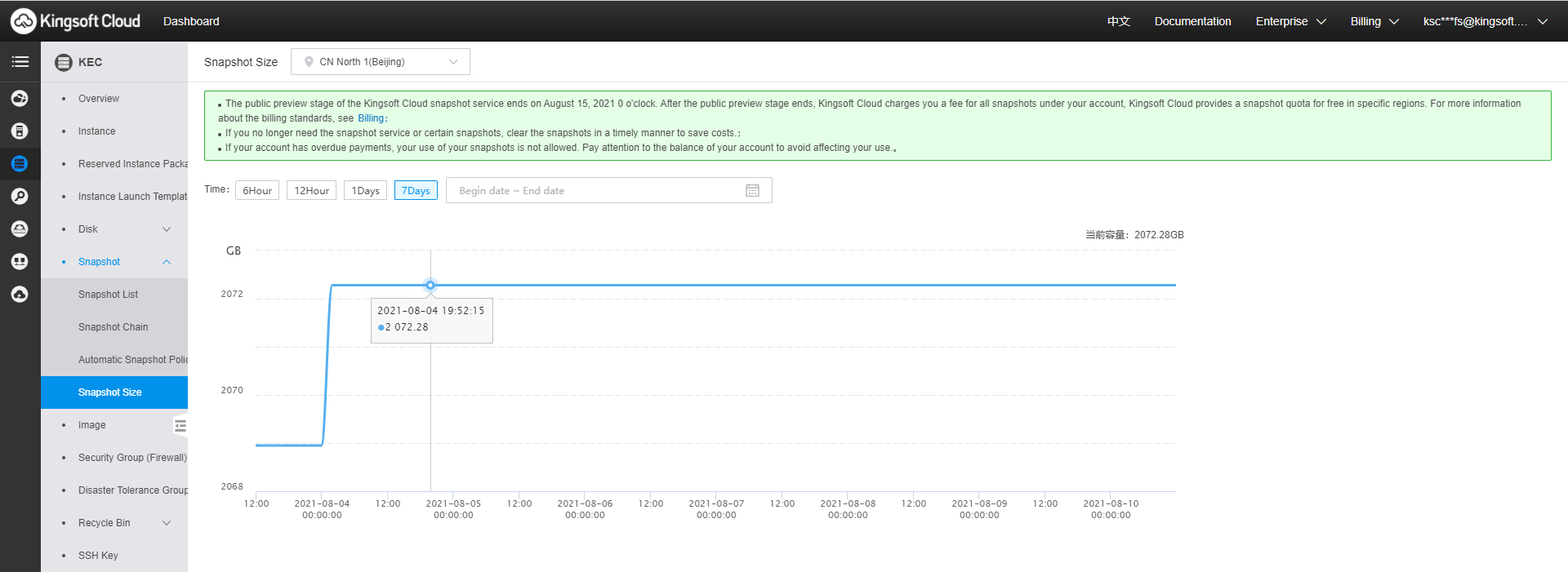 Kingsoft CloudDocumentationView the snapshot size