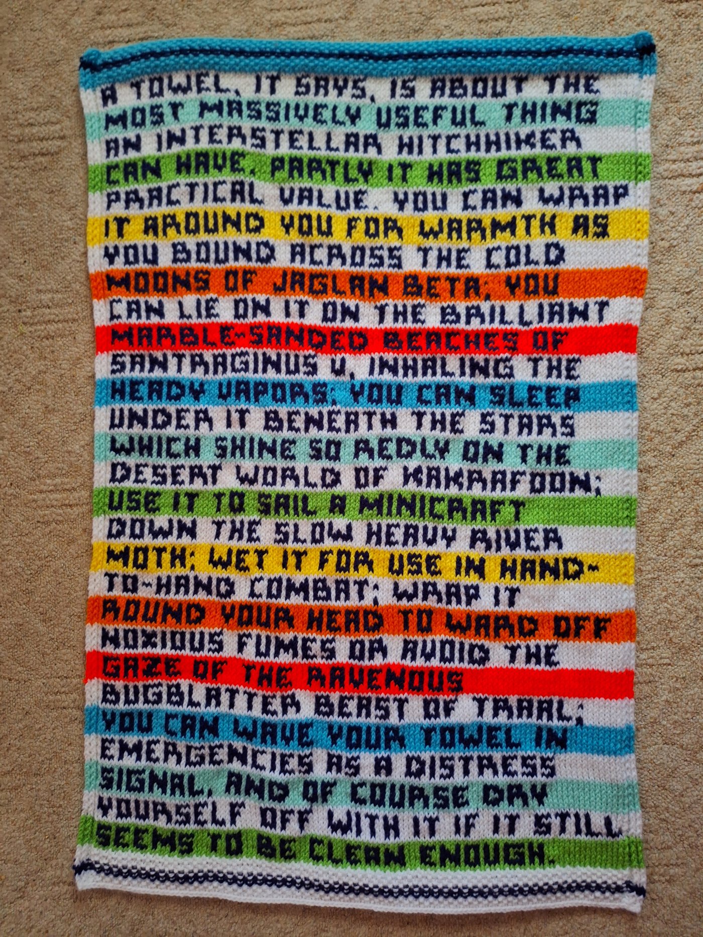 Towel Hitchhiker's Guide Quote “a towel, [the hitchhiker's guide to the galaxy] says, is about the most massively useful thing an interstellar hitchhiker can have. A towel, it says, is about the most massively. The hitchhiker's guide to the galaxy has a few things to say on the subject of towels. But douglas adams gave us many more memorable sayings, in the ‘hitchhiker’s guide. Towel Hitchhiker's Guide Quote.
