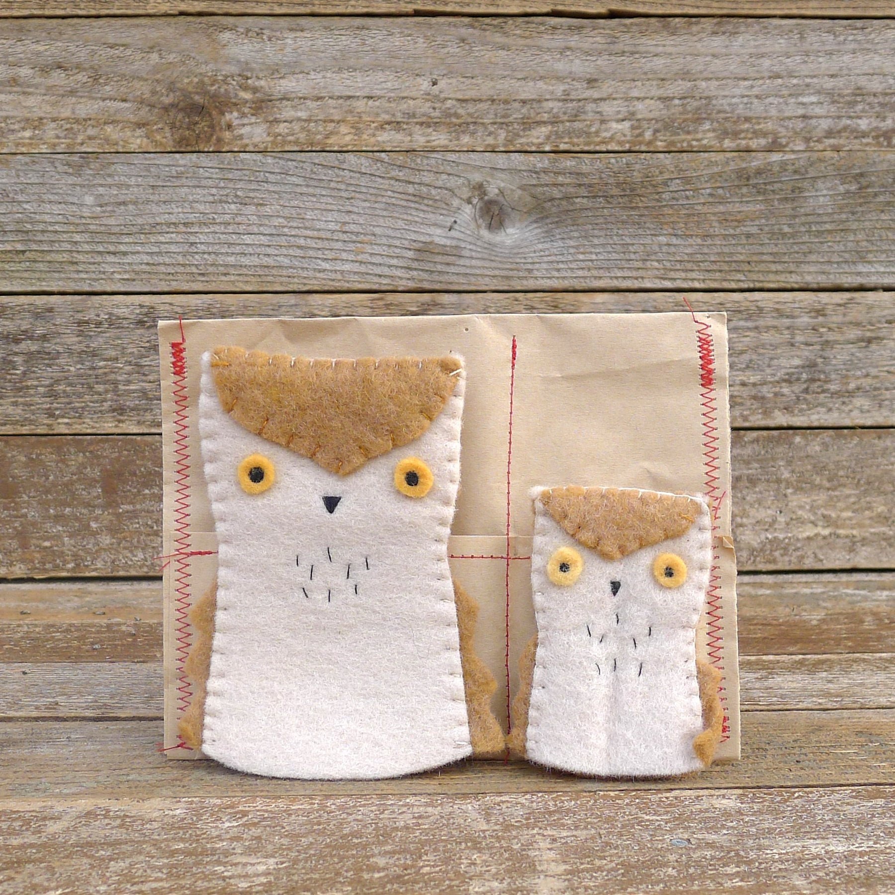 Handstitched wool felt owl finger puppet individual or pair Etsy