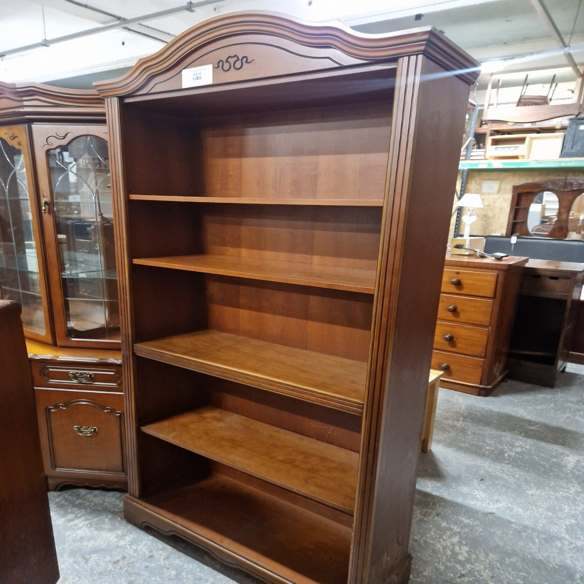 Tall curved top rossmore mahogany bookcase cw shelves Q3223 CJM Furniture