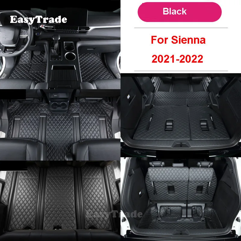 Three Rows Car Carpet Floor Mat For Toyota Sienna 2021 2022 Accessories Pu Leather Rear Trunk