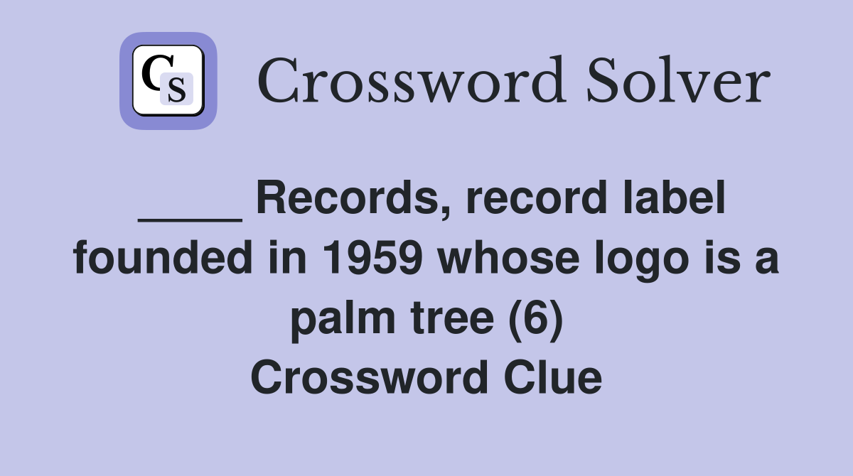 Records, record label founded in 1959 whose logo is a palm tree (6) Crossword Clue Answers