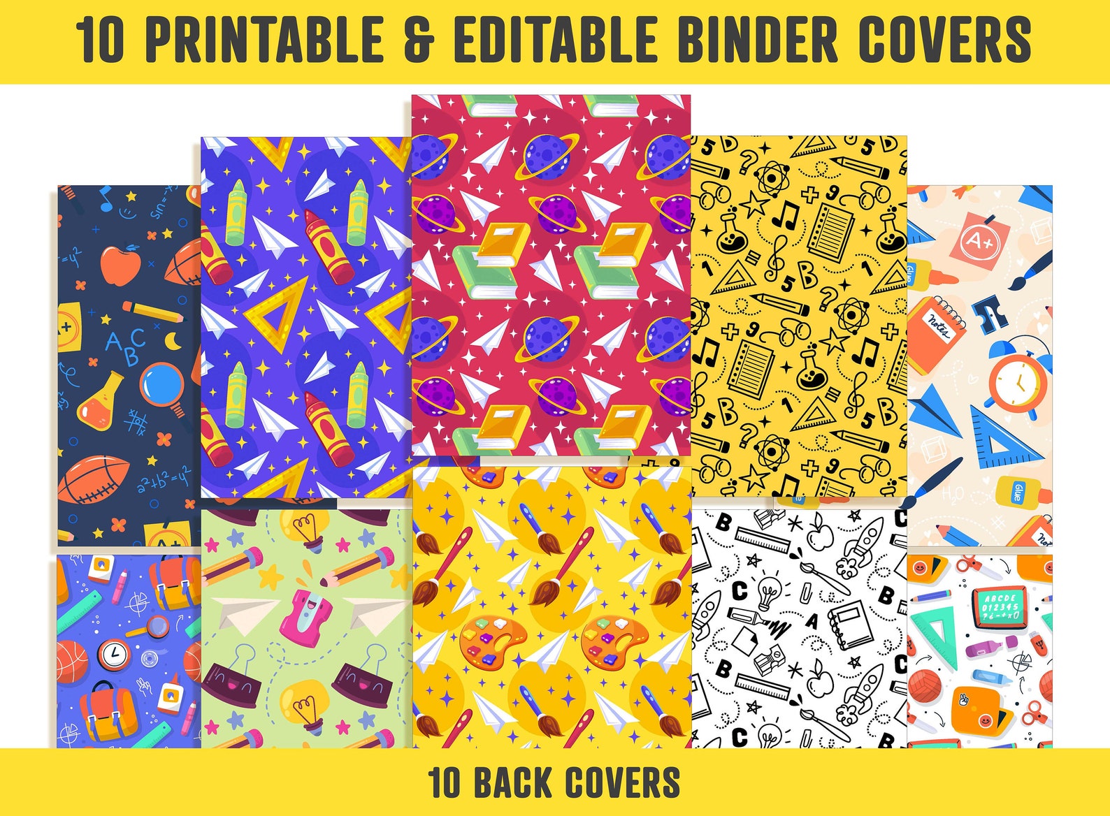 Back to School Binder Cover 10 Printable & Editable Binder Etsy