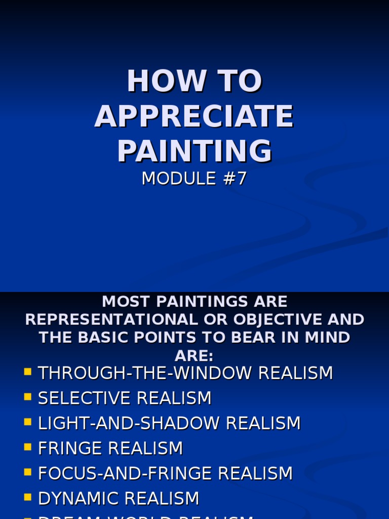 (PPT) HOW TO APPRECIATE PAINTING DOKUMEN.TIPS How To Appreciate A Good Painting 7 compliments guaranteed to make any artist swoon! What to say when viewing an artists' work. And what not to say to an artist about their work! Here are ten tips on how to compliment an artist without sounding awkward, fake, or embarrassed: Whether you’re sharing the appreciation words as an instagram follower, friend, family member, or a class teacher,. How To Appreciate A Good Painting.