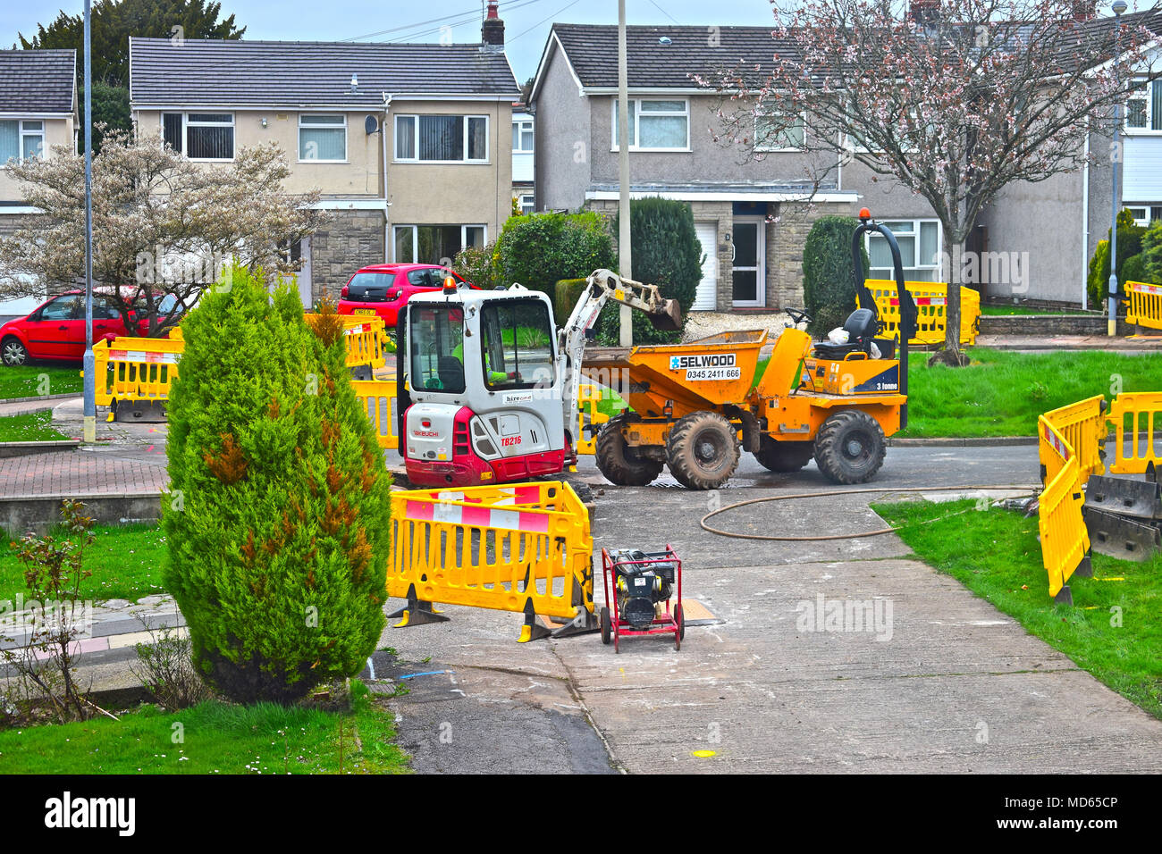 Workmen replacing old gas pipes in Rhiwbina, Cardiff. This involves