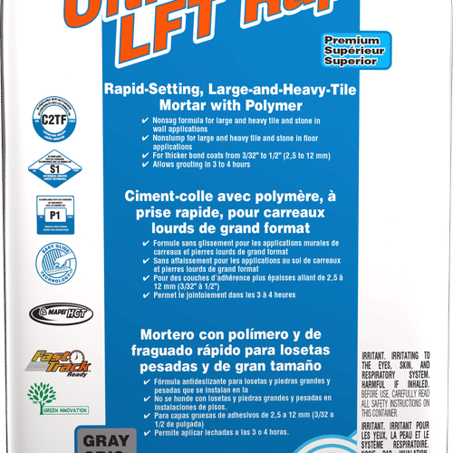 Mapei Ultraflex LFT Rapid FastSetting Large & Heavy Tile Mortar, Gray Lft Mortar Mapei For interior/exterior floor, wall and countertop installations. This mortar has a high content of unique dry po. Lft Mortar Mapei.