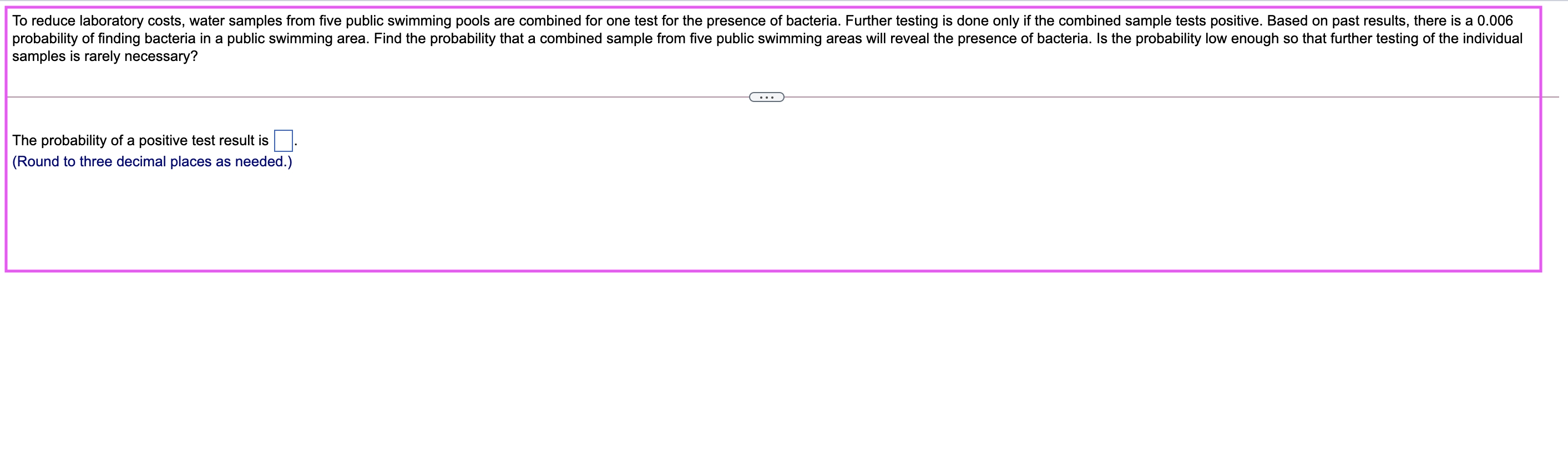 Solved To reduce laboratory costs, water samples from two To Reduce Laboratory Costs Water Samples From to reduce laboratory costs, water samples from twopublic swimming pools are combined for one test for the presence of. to reduce laboratory costs, water samples from two public swimming pools are combined for one test for the presence of. to reduce laboratory costs, water samples from two public swimming pools are combined for one test for the. To Reduce Laboratory Costs Water Samples From.