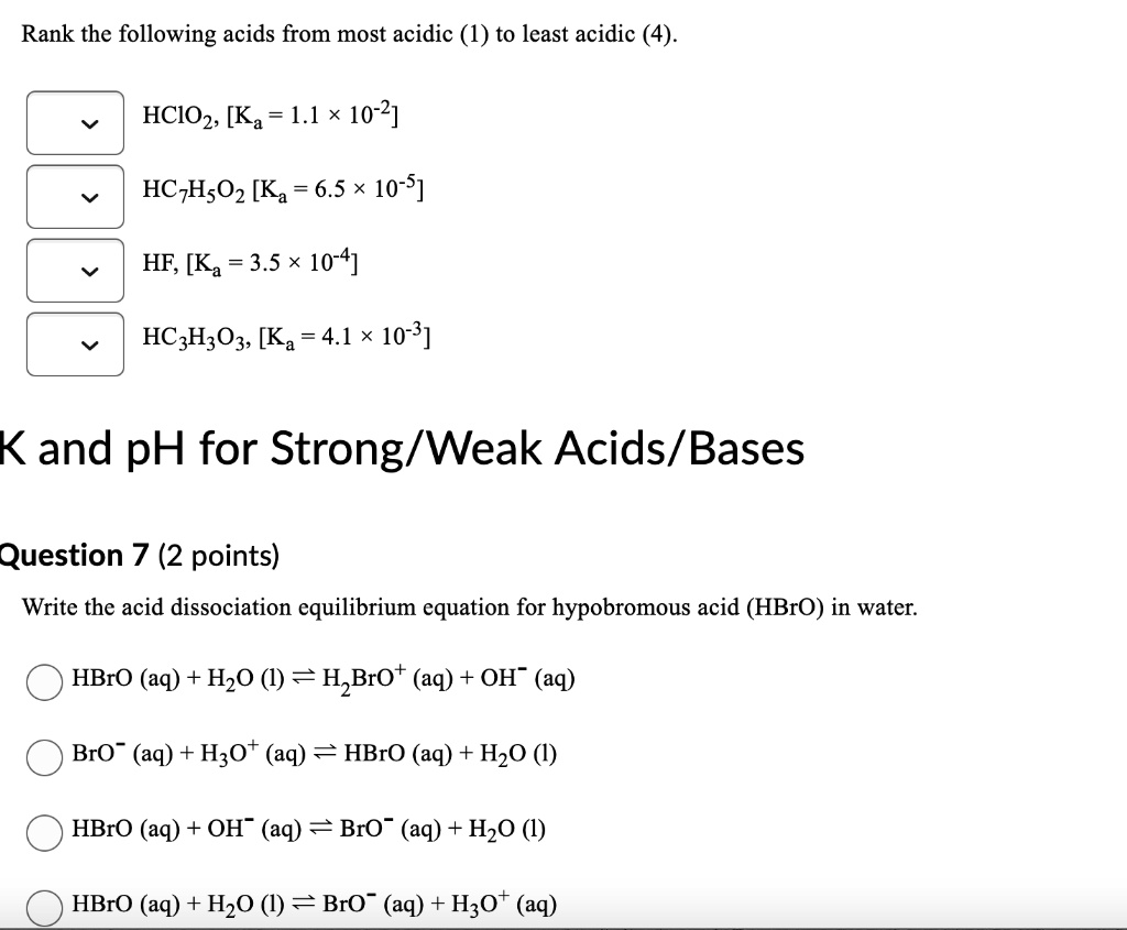 Solved Rank in order of increasing acidity. Least acidic is What Water Is Least Acidic The least acidic bottled water is one with a ph level close to 7, which is considered neutral. Some of the leading brands, such as evian and. Water with a very low ph can taste sour and corrode pipes, while water with a very high ph can taste bitter and cause scaling in pipes and appliances. (ph values are excerpted. What Water Is Least Acidic.