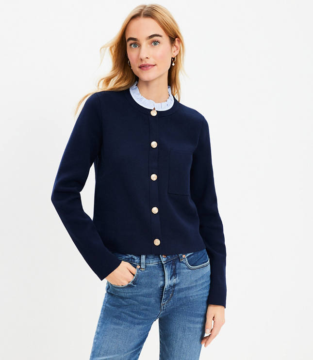 Ruffle Collar Mixed Media Sweater Jacket
