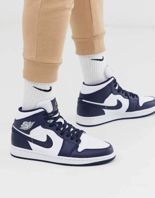 Zapatillas de deporte hitop en azul marino y blanco Air Jordan 1 de Nike Jordan ASOS