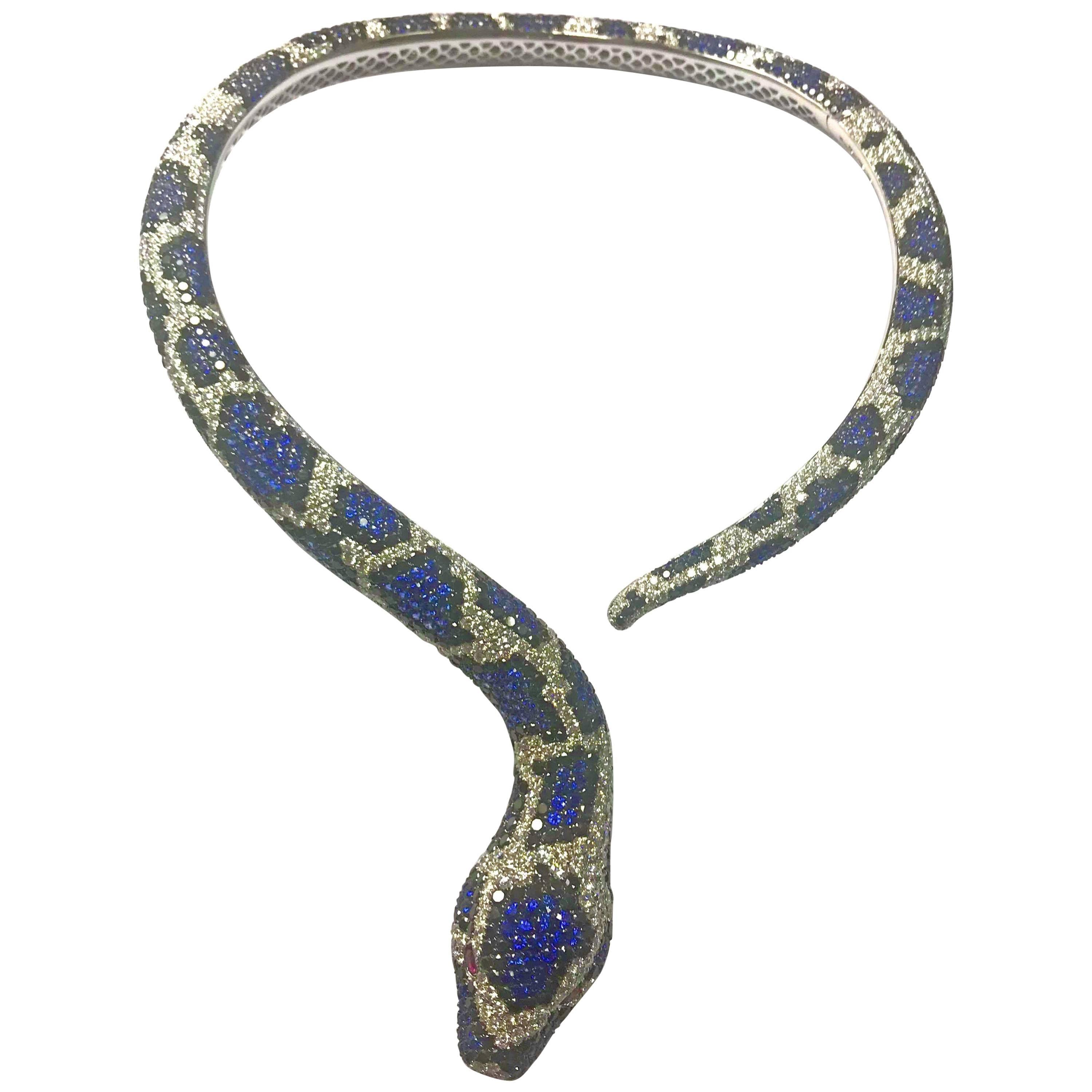 Amazing Snake Necklace 81 Carat Diamonds Black Diamonds Blue Sapphire