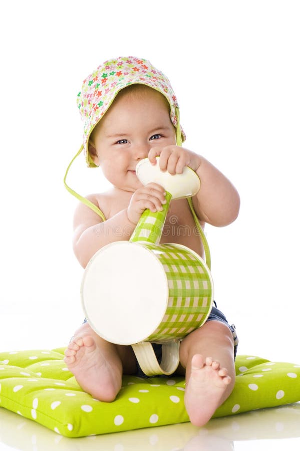 Baby Boy with Watering Can stock photo. Image of conductor 31296498