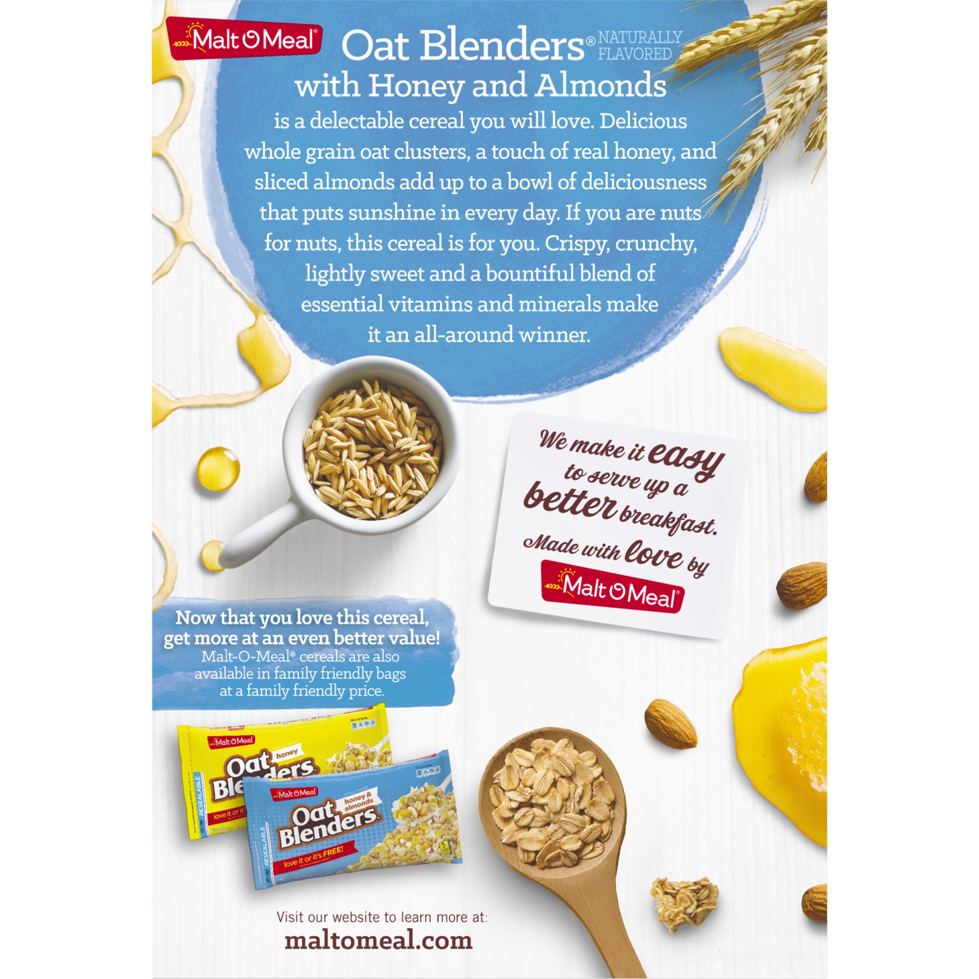 MaltOMeal® Honey Oat Blenders® Cereal Reviews 2020 Oat Blenders Cereal Calories ¾ cup of cereal, oat blenders (malt o meal) contains 120 calories. 160 calories, nutrition grade (b minus), problematic ingredients, and more. honey & almond oat blenders cereal. The macronutrient breakdown is 82% carbs, 11% fat, and 7%. personalized health review for malt o meal cereal, oat blenders, honey & almond: a donut chart showing which. Oat Blenders Cereal Calories.