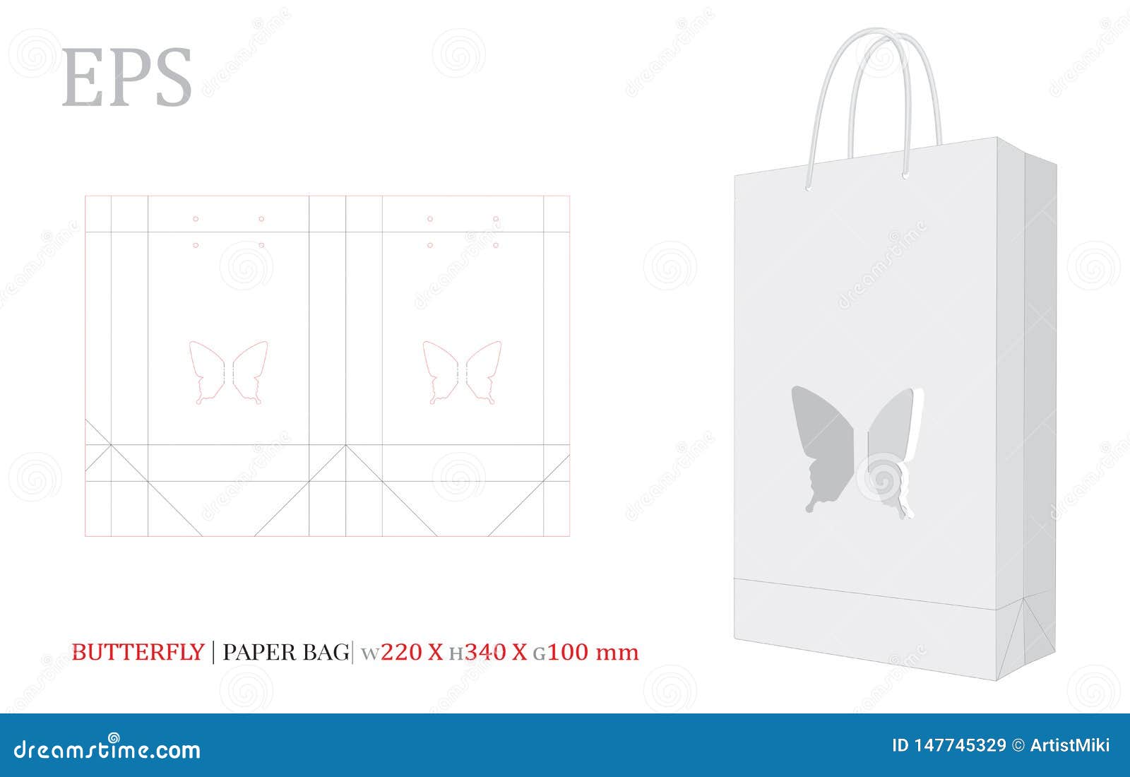 Paper Bag Illustration, Shopping Bag,180 X 190 X 60. Vector with Die