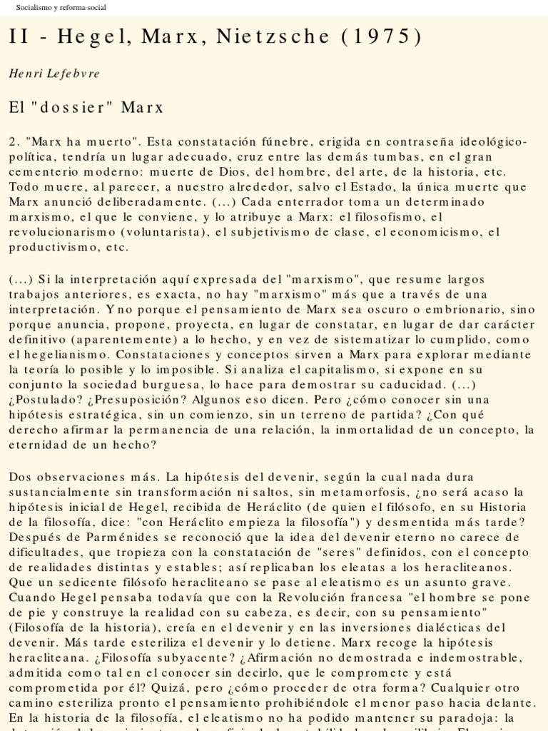 Henri Lefebvre Dos PDF marxismo Karl Marx Henri Lefebvre Hegel Marx Nietzsche Henri lefebvre saw marx as an ‘unavoidable, necessary, but insufficient starting point’, and always insisted on the importance of hegel to understanding marx. Marxist in terms of the social and society; Unsurprisingly, lefebvre always insisted on the importance of hegel to understanding marx. Marxist in terms of the. But the imposing metaphilosophy also suggested. Publication date february 1992 publisher siglo. Henri Lefebvre Hegel Marx Nietzsche.