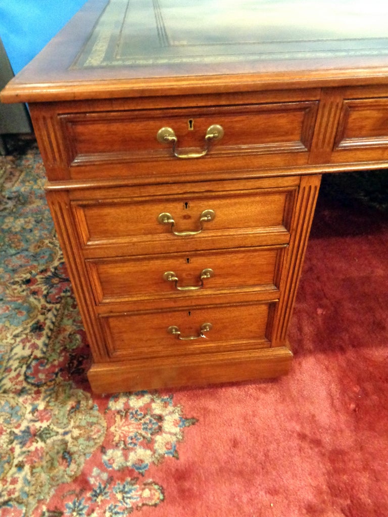 Signed English Double Sided Mahogany Partners Desk by Maple and Co. For
