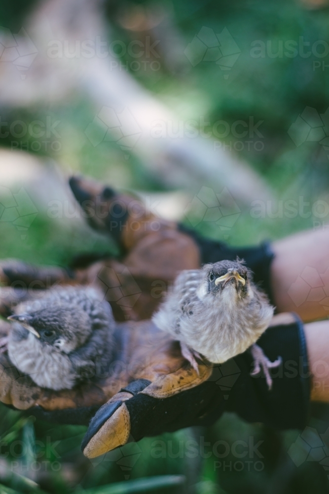 Image of baby noisy miner birds Austockphoto