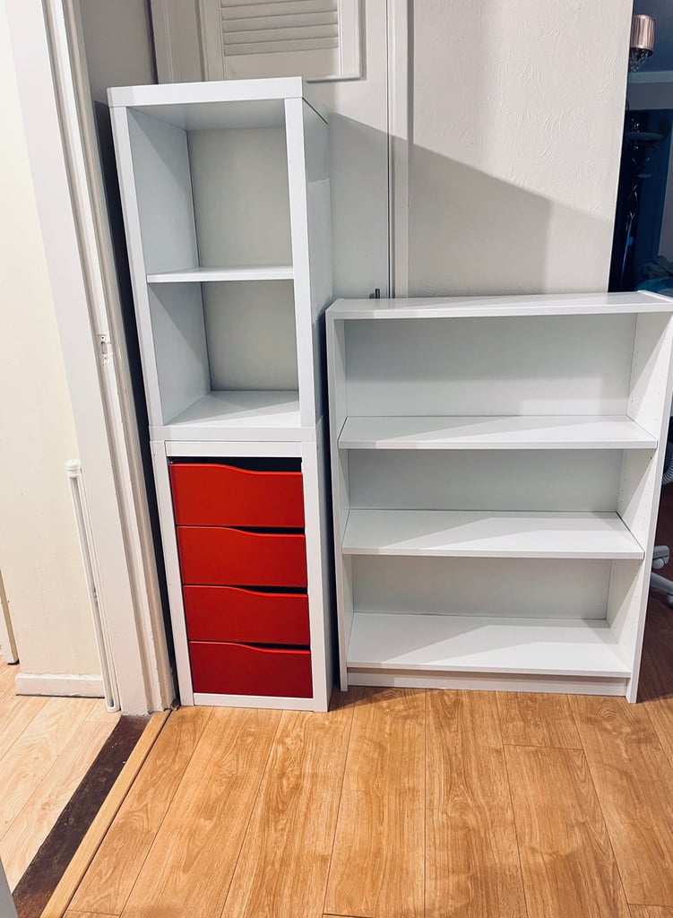 3X IKEA White Shelving Units Kallax 1X2 Billy Bookcase Drawers Storage
