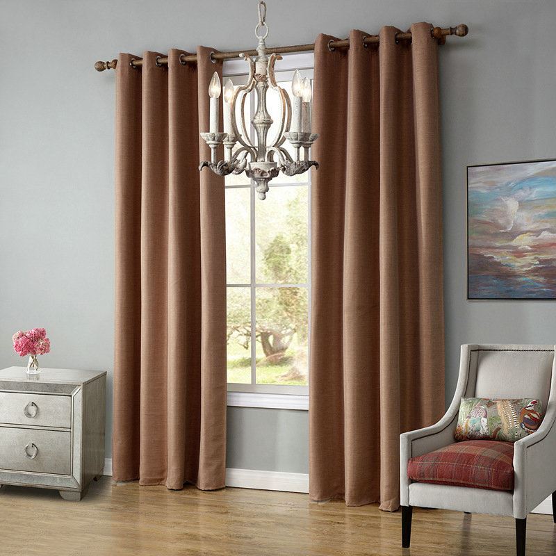 Modern Simple Light Brown Blackout Curtains Finished Curtains 7 Sizes