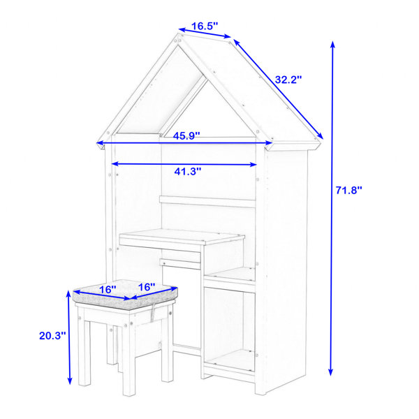 Harper Orchard Myerstown Wooden HouseShaped Desk with Cushion Stool