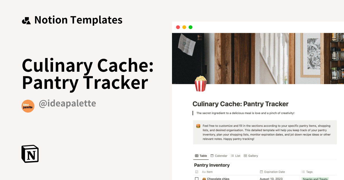 Culinary Cache Pantry Tracker by Idea Palette Notion Template