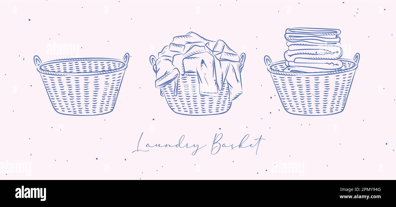 Laundry baskets empty, with dirty and clean clothes drawing in graphic